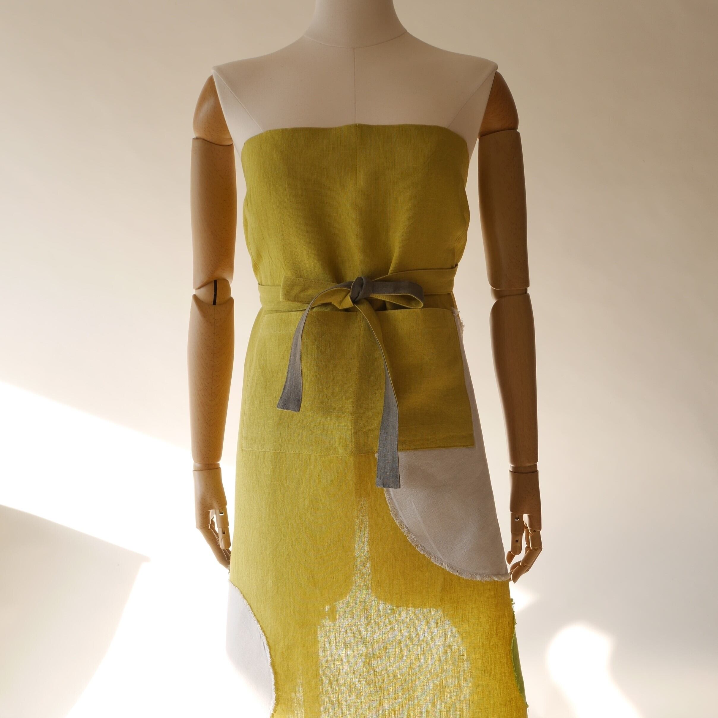 少し青みがかった黄色のリネンはまさにミモザ色。