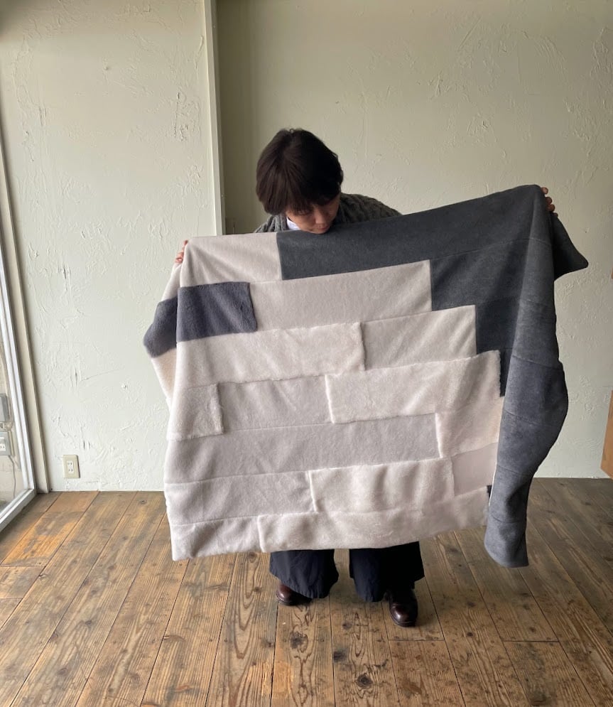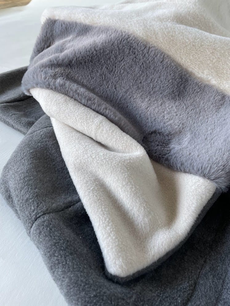 メルトンフリースのブランケット(グレー×ホワイト)