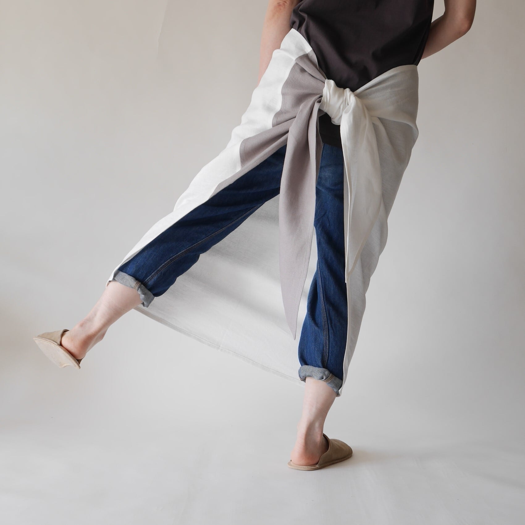 ひも先をぐるっと前に回してお腹の上で結ぶと、ぐっとドレッシーになり、
