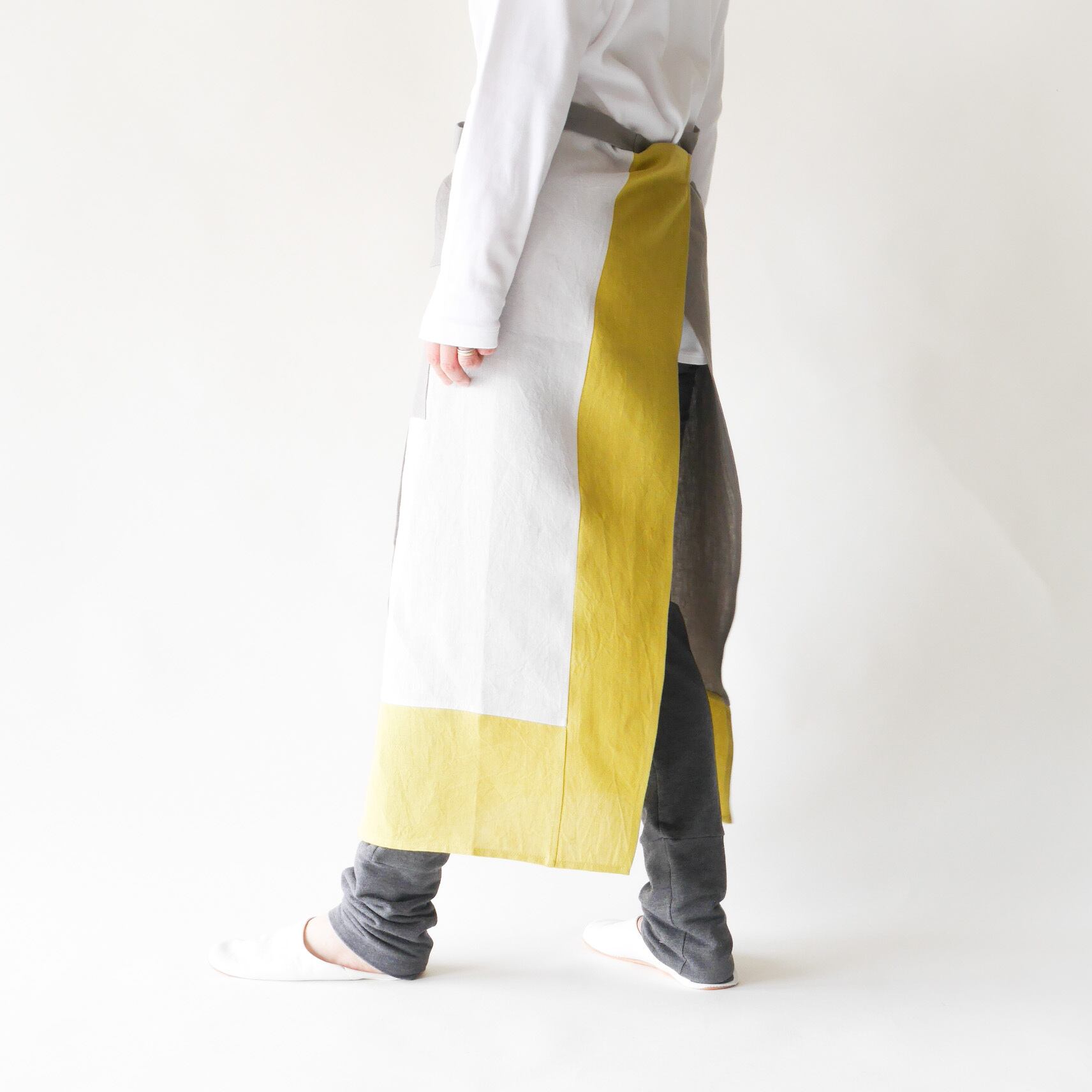 スリットまえかけ(グレー×ミモザ)