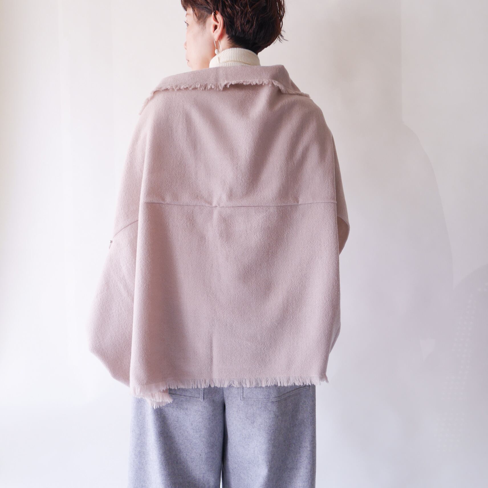 ショールの周囲のフリンジがデザインのアクセントになっています。