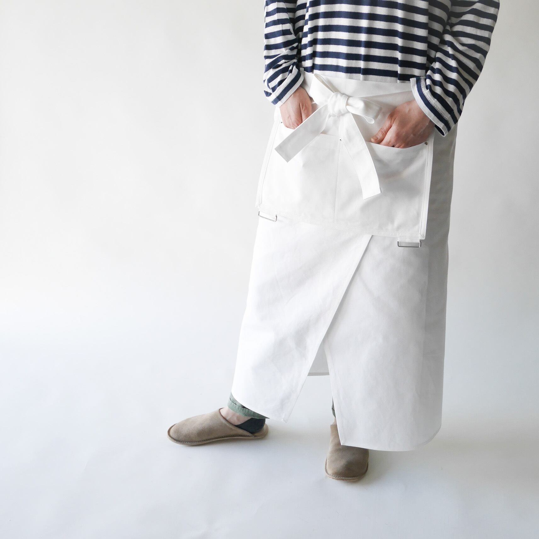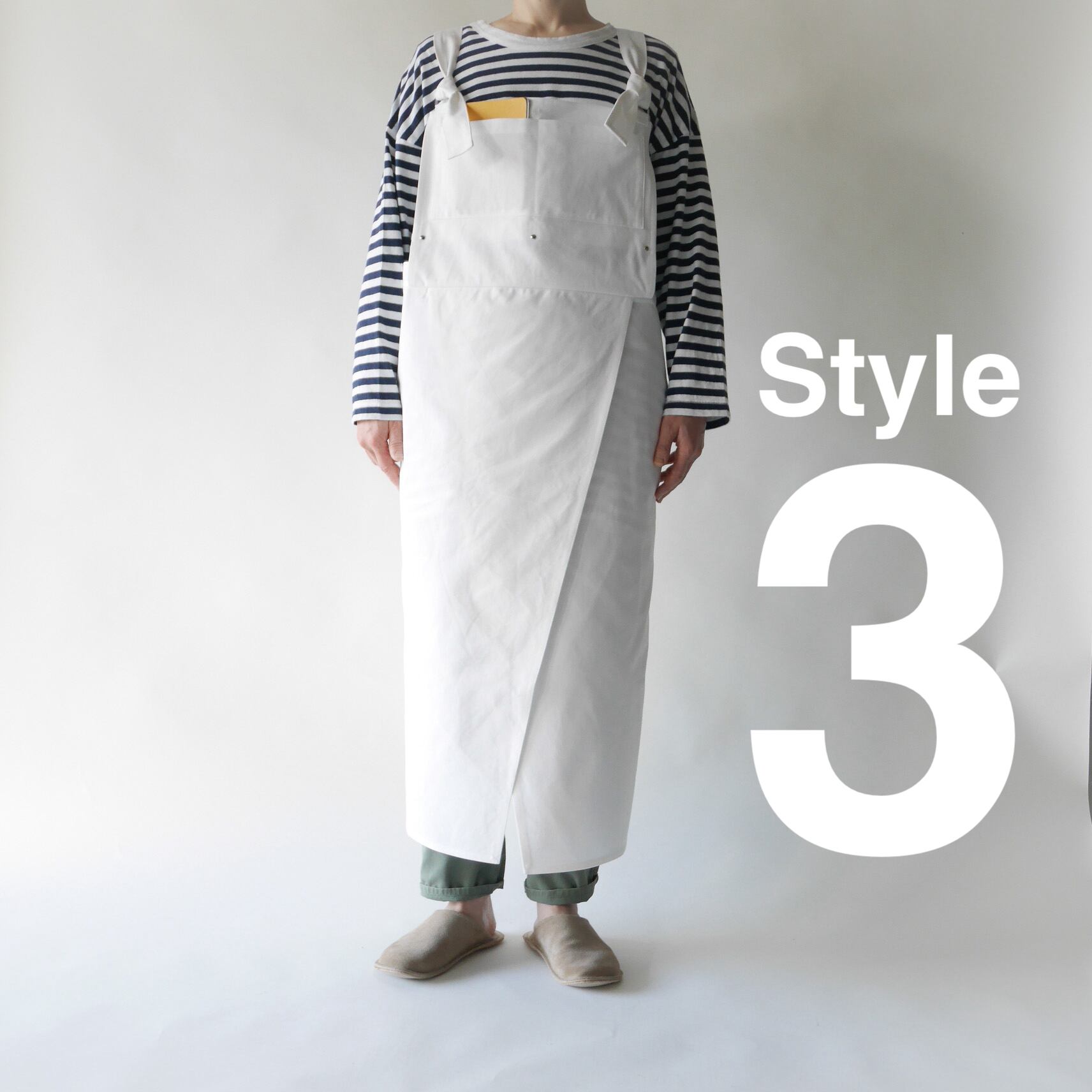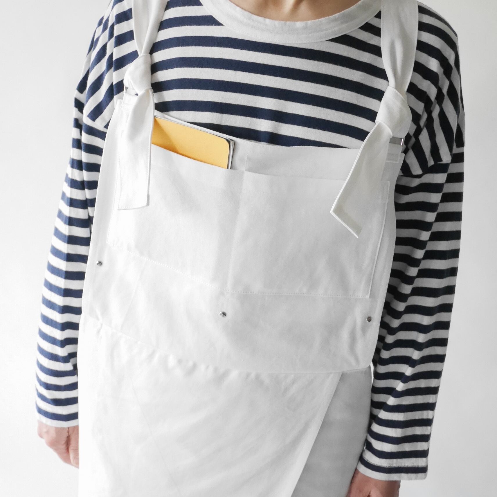 紐を肩から下ろして結ぶとジャンパースカートのようなエプロンに。