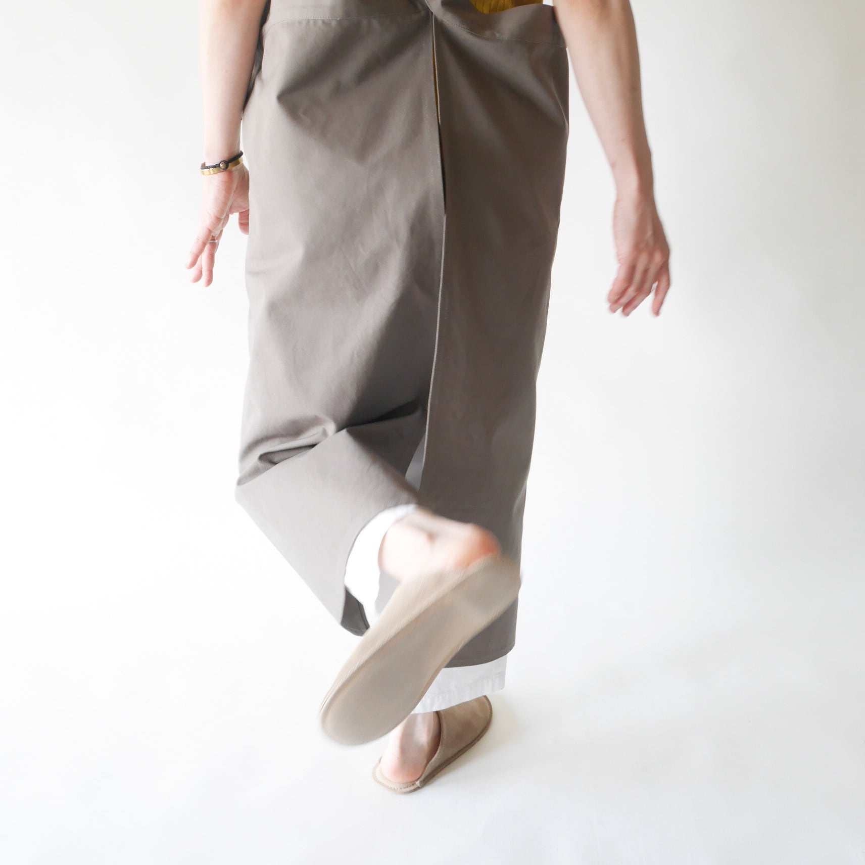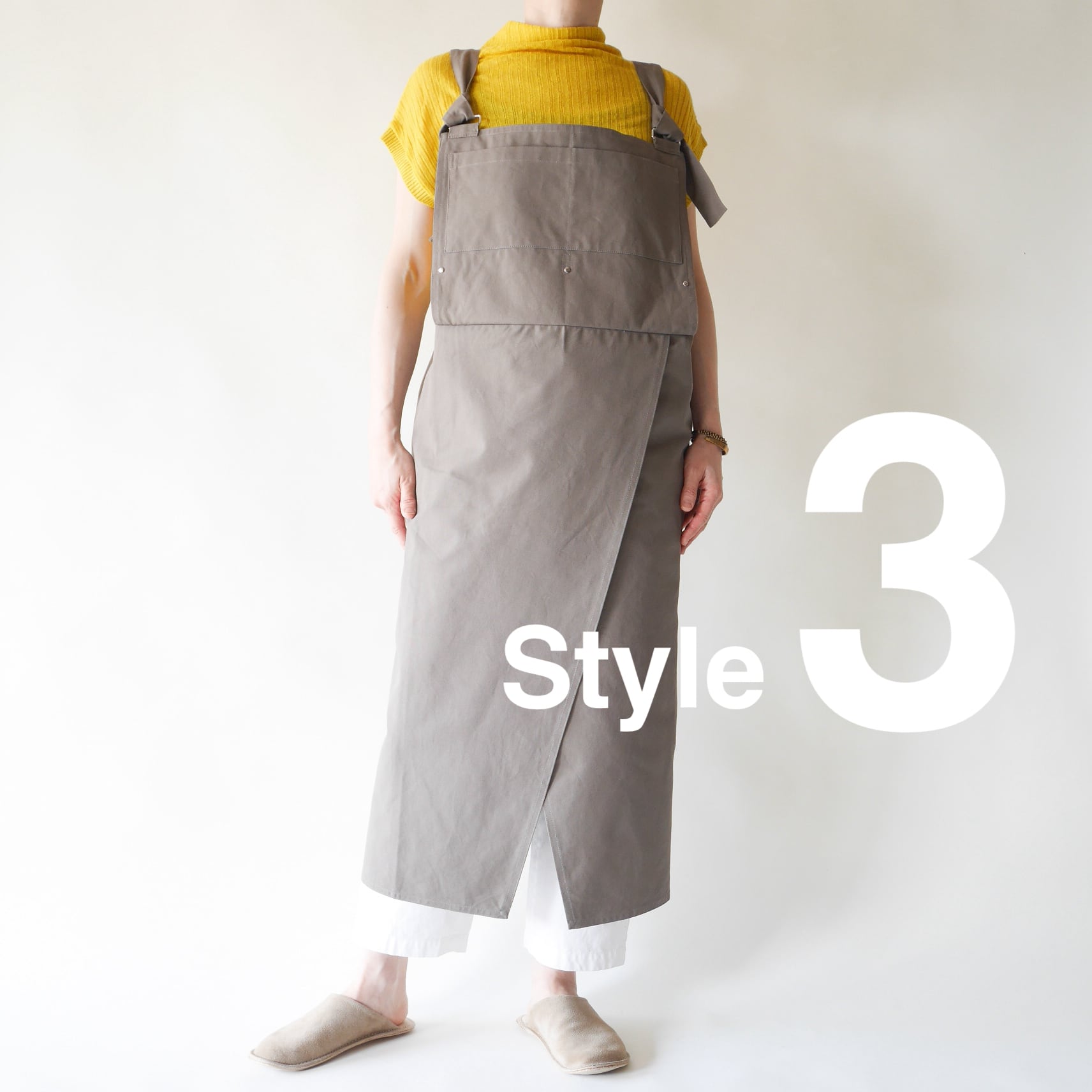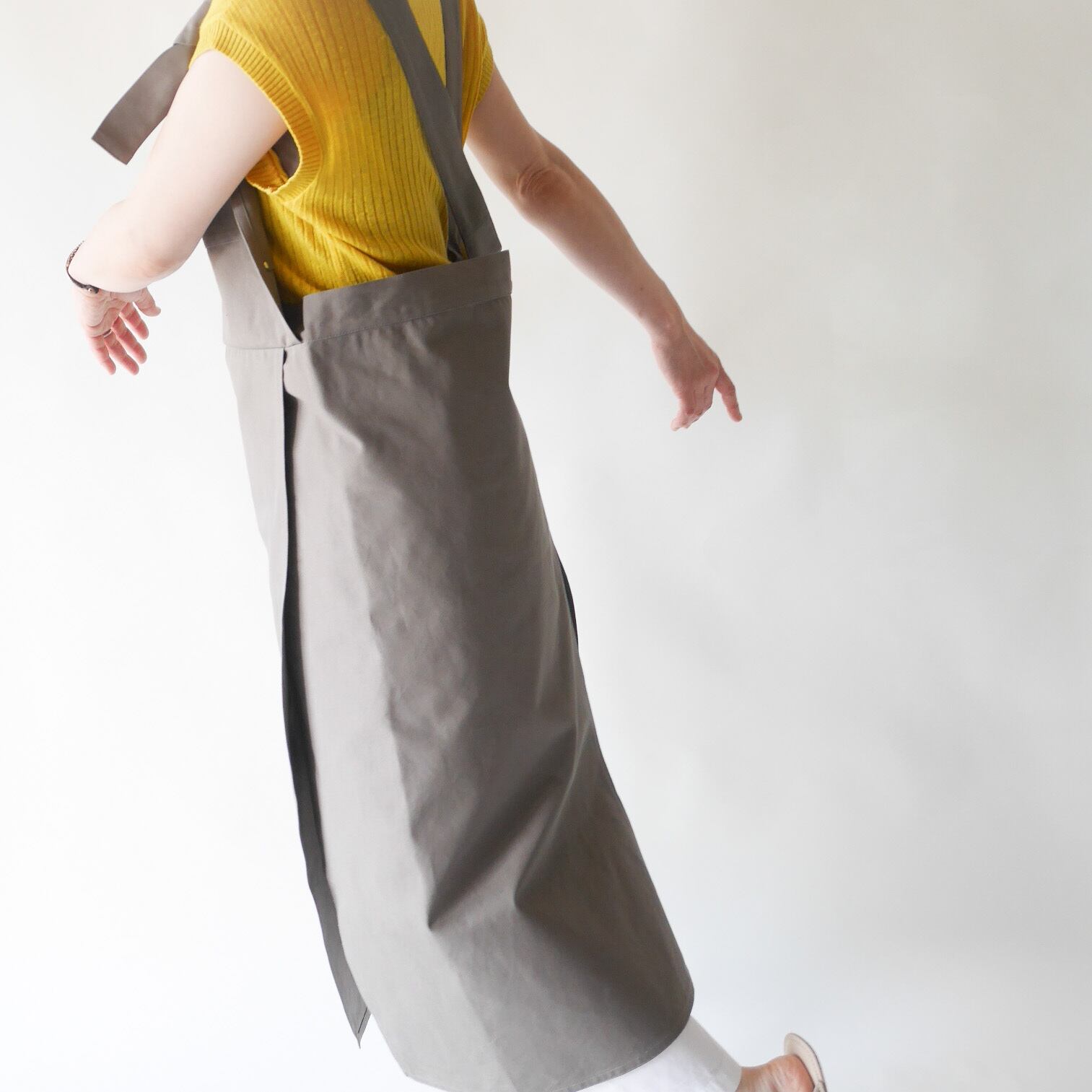 紐を肩から下ろして結ぶとジャンパースカートのようなエプロンに。