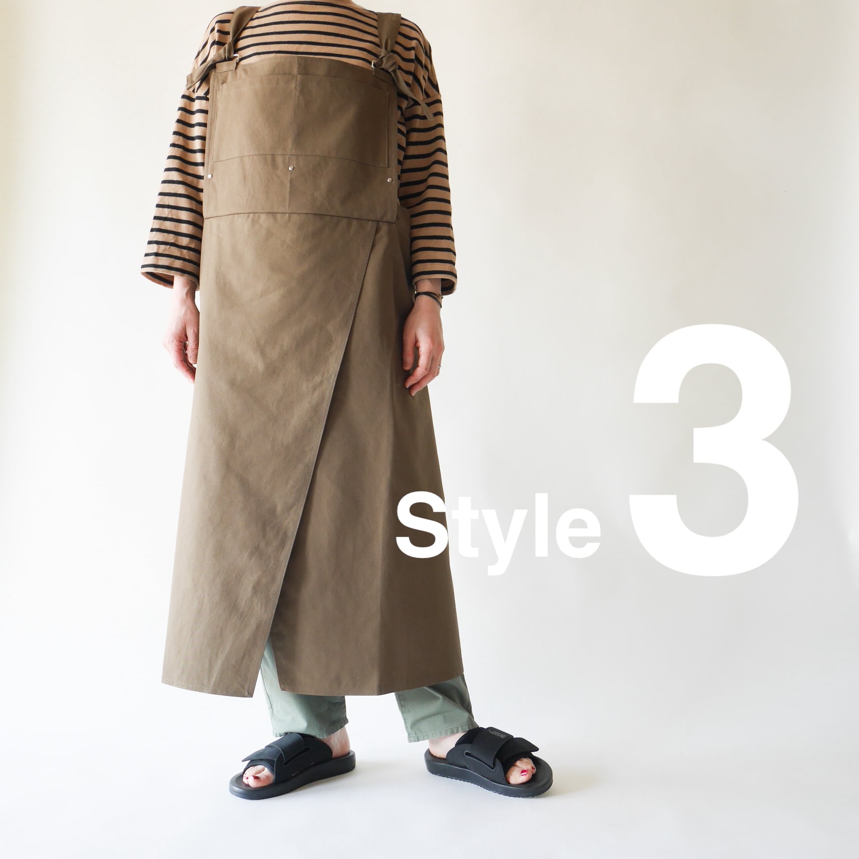 紐を肩から下ろして結ぶとジャンパースカートのようなエプロンに。
