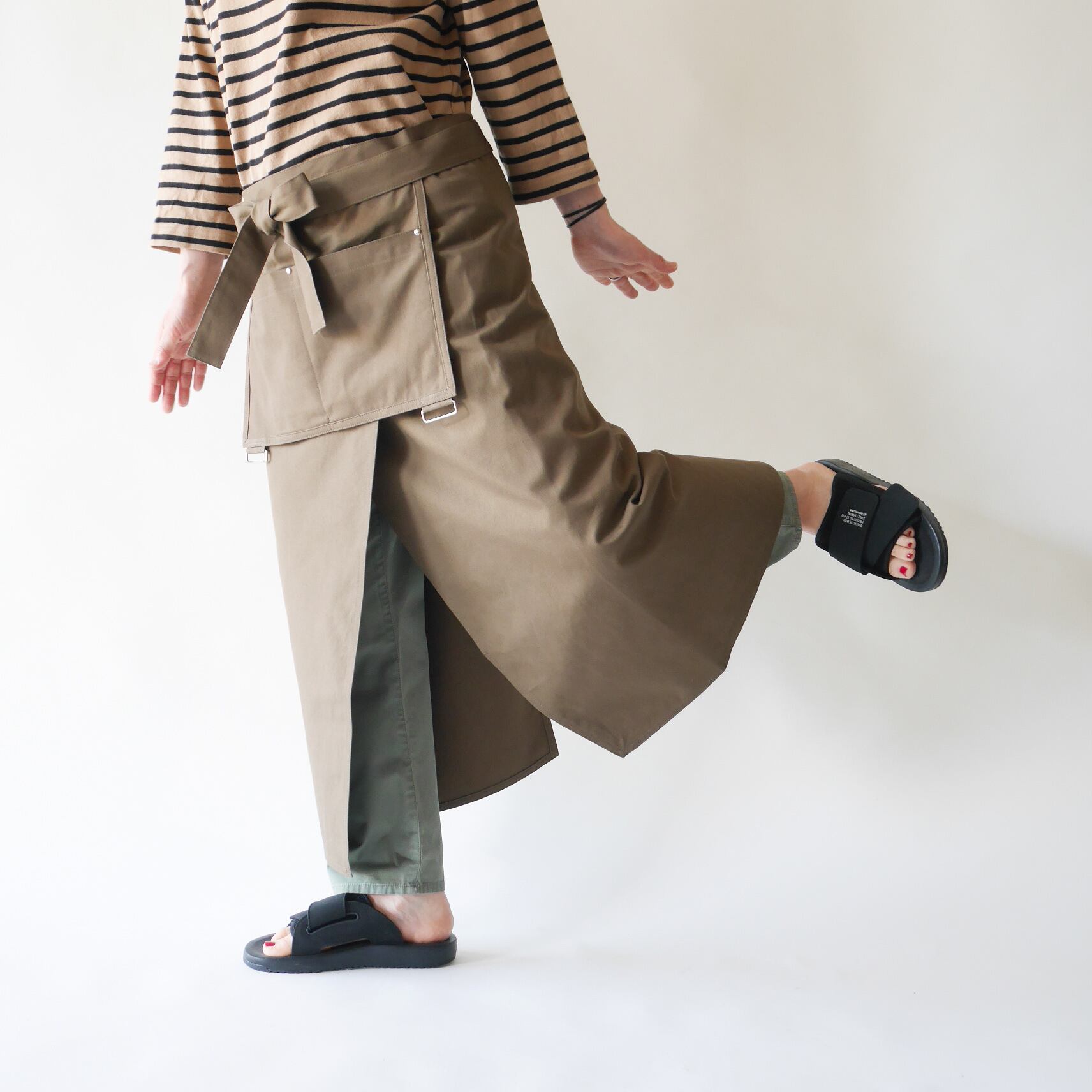 レギンスやスキニーパ ンツの上に着けてサイドスリット入りのスカートのような着こなしを。